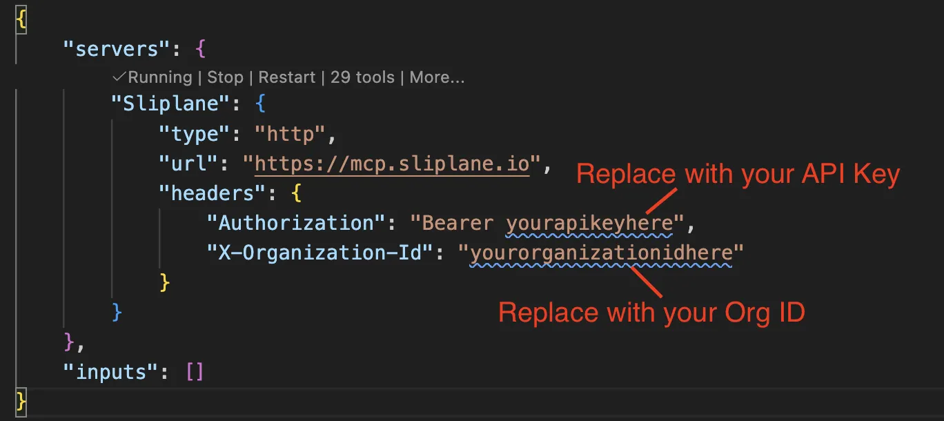 In VS Code, open the chat and ask something like: "List my Sliplane services". The model will use the MCP server to call the Sliplane API and show your services.