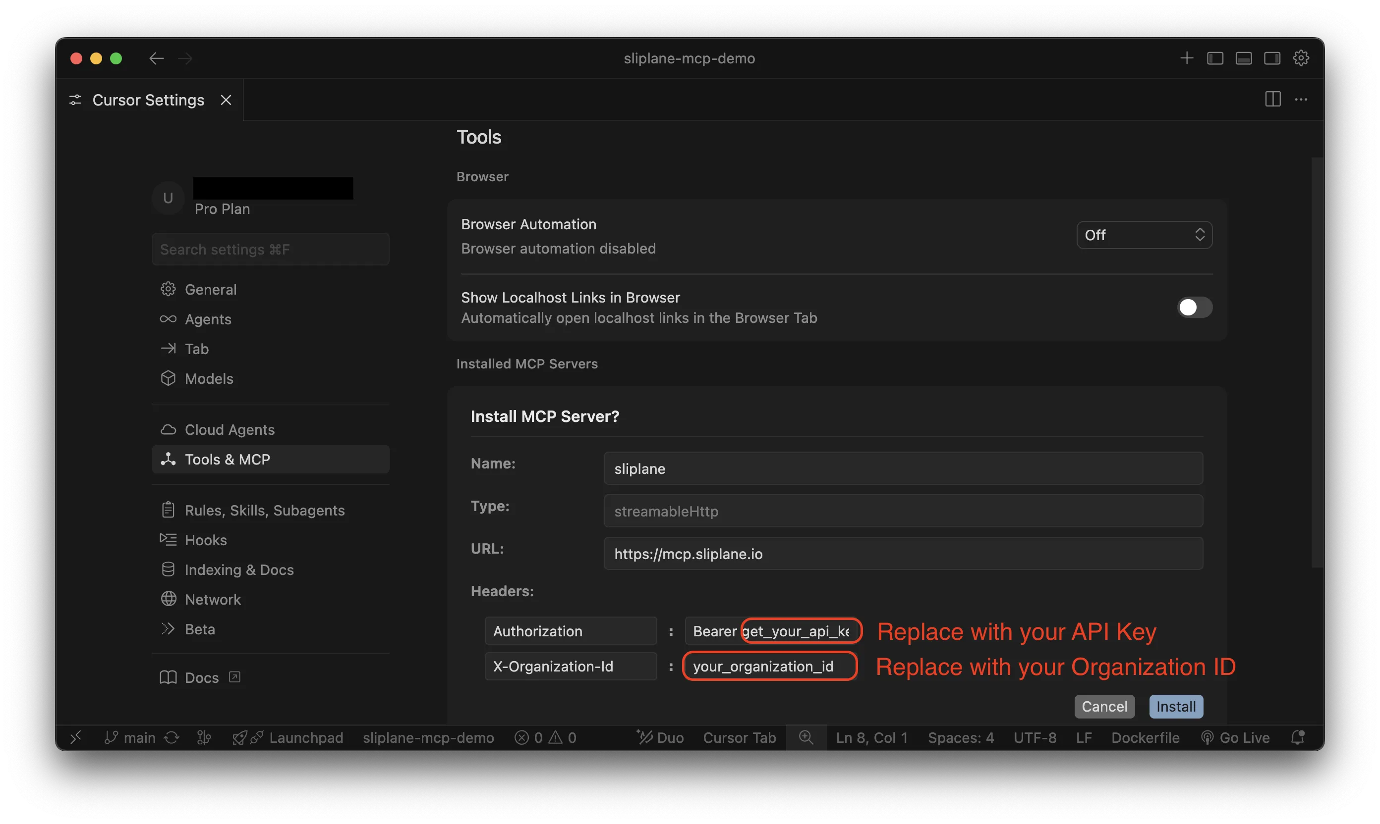 Bevor du den Sliplane MCP Server in Cursor installierst, brauchst du: